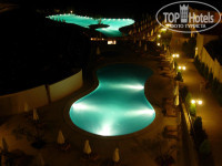 Порадовала нас и территория отеля. Все засажено цветами, деревьями, чистенько и опрятно. Три бассейна различной глубины на фоне водопада ниспадающего со стены отеля. Вечером включают подсветку, и играет музыка в баре у бассейна. Замечательный вид!