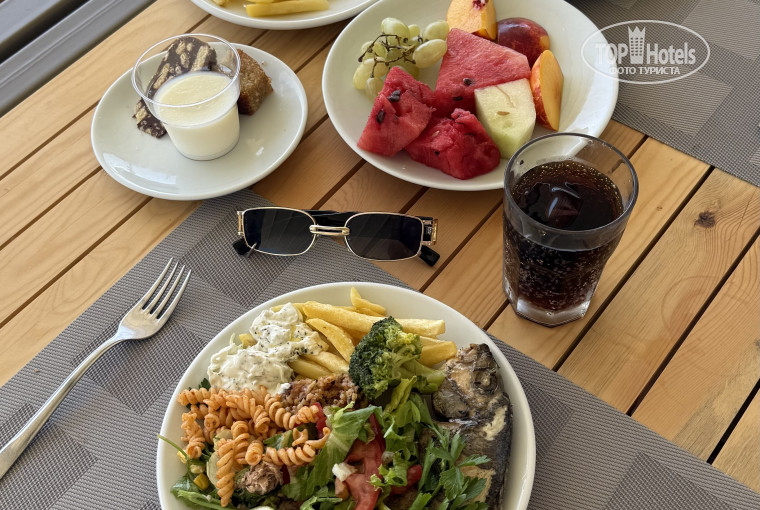 Еда вкусная и разнообразная, но в наш приезд была какая-то эпидемия отравлений по отелю, руководство пыталось понять, откуда это пошло. Мама моя немного подхватила инфекцию, но быстро прошло, потому что у нас с собой был уголь и другие препараты. Советую брать.