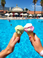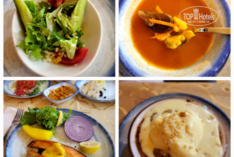 Отзывов очень много не хочется повторяться. Опять же хочу подчеркнуть, что проблем занять место в самой столовой где кондиционеры у нас не было. Мы были вдвоем с дочкой, если не было свободного столика подсаживались к кому то, либо видели что кто-то ищет место, предлагали сесть с нами. Просто некоторые так на этом заостряют внимание в некоторых отзывах, зачем портить себе отдых такими мелочами? Кухня такая разнообразная, что человек с любыми вкусовыми предпочтениями найдет для себя еду. Заметно увеличили ассортимент рыбы. Практически каждый день была разная рыба. И на гриле и жареная и на пару! Наелась на год вперед). Записывались в рыбный ресторан A'la Carte просто шикарный ужин! Дочка которая не ест рыбу, съела всё!