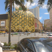 Рядом с отелем ТЦ Ананас, там же можно поесть. Вдоль побережья много кафе. Цены примерно одинаковые. У нас были завтраки и ужины, по этому ходили только в ресторан 1981 поесть утку по пекински. Питание в отели разнообразное, но для маленьких детей вряд ли подойдет. Хотя есть йогурты, хлопья, яйца ну и множество выпечки. На ужин можно выбрать рыбу, креветки, разнообразных моллюсков. Повара приготовят по вашему желанию. Также есть алкогольные коктейли, пиво, вино, десерты, мороженное. Вообщем поесть можно вкусно как на завтрак так и на ужин. Очень рекомендую попробовать лапшу которую при вас сварят ну а бульон и добавки выберете сами. Завтраки с 7:00 до 12:00, ужины с 18:00 до 21:00. Если есть желание можно зайти не один раз.