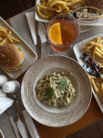 Снимали кабану на пляже, там тоже кушали по меню, оно меньше чем в ресторане 24/7. Понравилась паста, неплохие салаты. Бургеры не очень. Сразу скажу по кабанам, хочется прям отметить, что немного не доработана система. Задумка классная, тебя обслуживают, но почему бы не сделать какие-то кнопки вызова сотрудников? Персонал подходит время от времени, но когда тебе что-то необходимо, то все равно приходится искать.