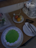 В день рождения мужа принесли тортик и фрукты.