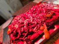 Еда - это отдельная тема. Столько морепродуктов редко в каком отеле встретишь. А разнообразие сладостей заставляет бить себя по рукам. Рекомендую посетить итальянский ресторан, пицца не хуже, чем в Венеции. В рыбном ресторане помимо изумительной еды еще и прекрасный вид на море, вечером закат завораживает. НО очень большие сытные порции, доесть не могли. И места за столиками никогда не ждали. Официант, если видел, что облюбованный нами столик занят, сразу находил альтернативу. Коктейли, воду и лед официанты подавали к столу по просьбе. Грязная посуда сразу убиралась. Поэтому и удивляют плохие отзывы.