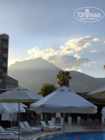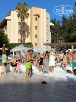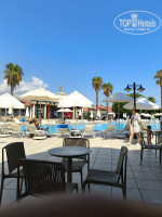 ТЕРРИТОРИЯ прекрасна: много сосен, елей, пальм и цветущих кустов, цитрусовые деревья, которые дают тень в жаркий день и помогают чувствовать себя комфортно даже при палящем солнце. Территория убирается, все аккуратно. Всегда можно было найти лежак у бассейна, на солнце, под зонтом или в тени деревьев у душевых. Есть дискотека с 23 до 02, там не очень многолюдно, но мы знакомились и собирали компанию желающих, было весело! Вечером в античном дворике при дискотеке можно посидеть в тишине. Бассейн большой и чистый, вода не слишком холодная.