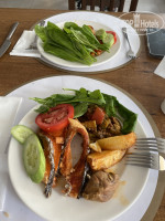 Обеды нравились больше, 1 раз были вкусные стейки красной рыбы, курица гриль очень вкусная, индейка, печень, сердце, вкусно приготовленные. Но не было какого-то мяса, типа говядины, языка, утки. Были котлеты из говядины пару раз, они вкусные очень, типа люля кебаб. Из рыбы были-стейки сома, скумбрия на гриле, что то типа радужной форели целые рыбки, еще на гриле какая то рыба. Ни Дорадо ни сибаса не было, хотя до этого мы были в отеле 4* там была много раз эти рыбы, тем более они в Турции очень вкусные. Из овощей были баклажаны на гриле (редко), кабачки, рагу из овощей. Вкусно очень приготовленная фасоль, нут. Много зелени также , вкусные гарниры-рис, картофель запечный, макароны перья с соусом, спагетти с соусом балоньезе. 1 раз понравился турецкий суп, хотя были каждый день, кажетс назывался что то суп невесты, остальные не пробовала, хотя видела наливали борщ.