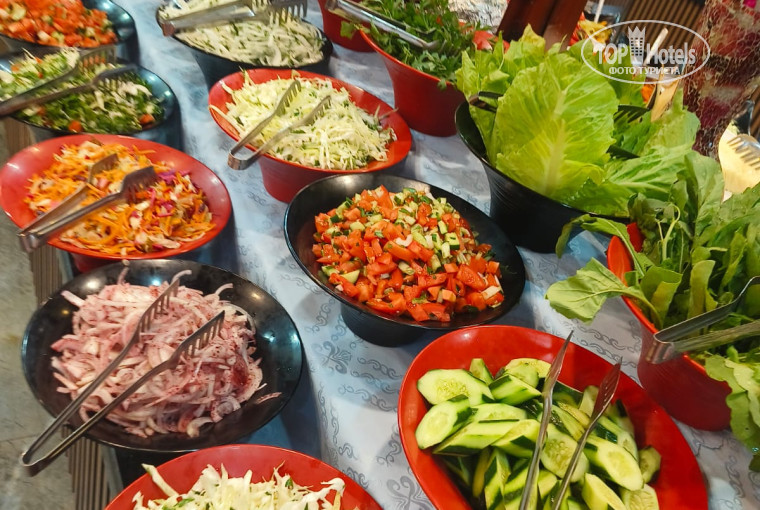 Еда… ну вот я боялась, что будет одно и то же каждый день. На самом деле не шведский стол как в пятизвёздочном, но нормально. Я ела больше овощи, рыбу, супчики. Дочка подсела на какие-то маленькие булочки с корицей, таскала по две. Фрукты были всегда — арбузы, дыни, персики, даже виноград пару раз. И напитки нормальные — я пила кофе, ребёнок сок. Без навязчивого алкоголя, что мне прям понравилось.