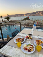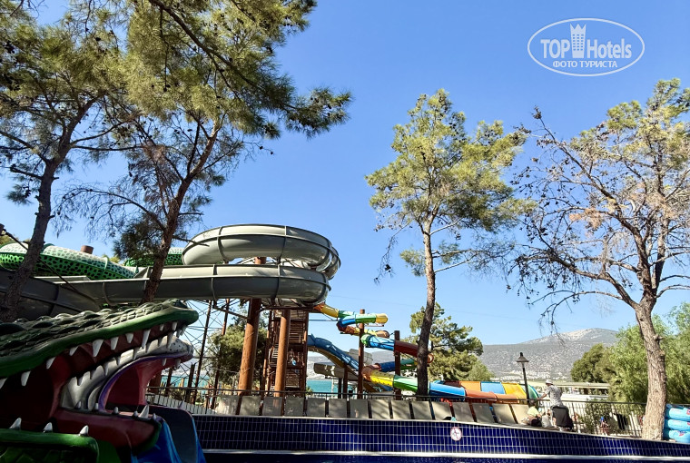 Хороший отель. Все понравилось. Чистое, прозрачное, спокойное море, на входе в море есть камни (но если это смущает, можно надеть спец. обувь, но мы обошлись без нее), дальше песок, на пляже тоже песок. Пляж чистый, красивый. Людей немного, мест хватает. Ни кто не бежит с полотенцем занимать места с утра). В том числе и в бассейне, лежаков всегда достаточно. Есть бассейн перед рестораном, там музыка и анимация. Есть бассейн с морской водой, там всегда спокойно. Есть Аквапарк, так же отдельный детский мини аквапарк. Аквапарк очень понравился. Баров достаточно) хороший выбор коктейлей. Помимо меню, делали апероль, негрони, и т д . Спокойно наливали балантайс. Обед и завтрак, все хорошо, без нареканий и без каких то изысков. Всего хватало и выбор есть). Закуски на пляже все отлично, выбор хороший. Парень печет классные лепешки с сыром и сыр-шпинат) Накладывают очень вкусное мороженое по моему с 11 до 17 часов. Ужин классный, нам очень понравился. Там уже гриль, морепродукты, много фруктов и десертов. На ужин так же есть шампанское. Уборка каждый день. Персонал очень вежливый. Отдыхающие в основном поляки, англичане. В отеле говорят на Английском, на русском практически нет, но это не проблема. На пляже отдыхает милая собачка). С одной стороны отеля национальный парк. А со второй стороны вдоль пляжа можно дойти до городка. В городке мы нашли аптеку, небольшие магазины мигрос, лавки с сувенирами, много заведений.