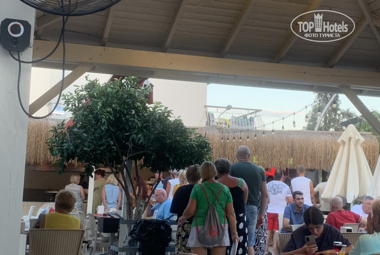 Самый для нас шок был с питанием, отель напомнил столовку с очередями за едой, кто-то скажет, что это фишка отеля, но мы ехали на шведский стол и стоять за едой?! Постоянно заканчивались приборы, тарелки, с утра я так и не смогла дождаться пиалы для каши, потому что персонал уже начал сам завтракать, и им было не до меня. Персонал питается с этого же шведского стола. Выбор еды скудный, на завтрак из сладкого покупные вафли и самое дешевое печенье. В обед и ужин что-то найти реально, но в один день помимо бешеной очереди на гриль из горячего была только тушеная капуста. Хочешь чего-то другого-стой в очереди. Люди занимают столики чуть ли не за час, за 15 минут бегут занимать очередь, как в голодные времена. Причем через час все это будет и без очередей. Хотя в отеле в основном отдыхают пенсионеры, для них это видимо нормально.