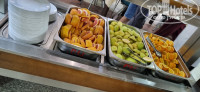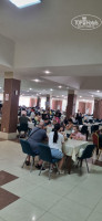 Столовая, в ней стоит запах столовки, вещи после посещения столовки воняют, выбор не богат, никаких изысков и излишков, ну голодным не будешь, но и удовольствия от еды не испытаешь, не было в июне свежих помидоров, огурцов, ну это вообще. Обычно блюда самые простые, завтрак - омлет, запеканка, обед ужин, 8 лотков, горячего и гарниры, салаты, фрукты, выпечка. Официантов много, молодцы, быстро убирают столы, в соседнем зале работает сотрудница с короткой стрижкой, мы хотели пройти через нее с коляской, в итоге она пустила нас, такое ощущение, что мы к ней домой приехали. Чтобы попасть в столовую надо преодолеть 2 огромные лестницы. И каждый должен пикнуть картой от номера, зафиксировать свой проход, помимо того, что у тебя есть браслет все включено. детские стульчики есть.