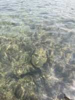 Пляж: полотенца выдают при входе, надо расписаться в бланке отеля. На пляже чисто, песок, лежаков уйма, бар с напитками для all. Море-как теплый кисель, активно плавать скорее всего не сможете, сразу забиваются мышцы рук и ног) Нырять-ничего не видно, короче все просто висят в море). На волнорезе много рыбок, люди видели ската маленького, я встретилась с черепахой🤦🏼♀️, на буйках сидят крабики). Говорили, что пляж собственный перед отелем откроют через 2 месяца-работы идут бурно.