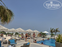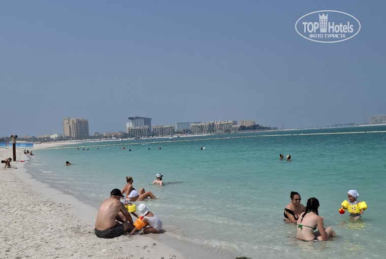 С учетом температуры воздуха 37-39 град, вода была 30+. Пляж большой как в длину, так и ширину. Белый , мелкий как мука, песок, не нагревается. Глубокий - при отливах( а они выраженные) глубина большая у буйков. Там же по периметру установлена сетка( как сказали -от водорослей и медуз). Глубина начинается не сразу, для детей отлично. Лежаков всем хватало.