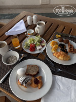 Питание очень хорошее, объедались стабильно три раза в день, но так как много ходили и плавали чувствовали себя хорошо на протяжении всего отпуска и даже не поправились. На завтрак вкусные блинчики, вафли, выпечка, круассанчики, каши, омлет, сосиски, сыры, колбасы, йогурты, творог, соки и фреш, и еще всякая всячина. Кофе из кофемашины не пила там ни разу, дома хватает, мне понравилось кофе из кофеварок, без очереди и очень вкусно. На обед можно пойти в основной ресторан на шведский стол или поесть пиццу, бургеры и картошку у бассейна. На ужин всегда жарят что то на гриле. На ужин очень понравились салаты, морепродукты, десерты очень вкусные удивили. Напитки на обед и ужин заказывали, приносили быстро. Ни разу у нас не болели животы, все свежее и вкусное, в ресторане порядок, убираются очень быстро. Вообще все негативные отзывы о Египте не применимы к этому отелю, здесь все идеально.