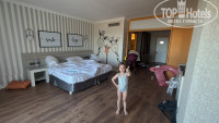 Номер дали в бунгало где аква парк, на втором этаже, хотя просили ходя бы первый(с коляской), состояние ужасное, все древнее,номер 3на 3(конура), беда полная, до основного здания и уж до пляжа ноги сотрешь ходом. Не долга думаем, связались с нашей туроператором, давно летаем через нее, объясняем, скидываем фото, видео и через час она нам звонит и говорит идти на ресепшен. Предлагают якобы один освободившийся номер в главном корпусе за 85$, берем!