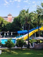 Трансфер был долгий, около 3 часов до отеля. По приезду нас вежливо встретили, забрали вещи, быстро заселились, на ресепшен очень вежливая Майра, предложила нам семейный номер с видом на горы и два ключа от номера. Это сказочный вид, который не передать ни одной камерой. В номере кровати удобные, для ребёнка 2 года-удобная детская кроватка. Сейф, фен, кондиционер, всё исправно работало. Мини бар пополняли с лихвой. Постельное и полотенца меняли каждый день, иногда не очень хорошо мыли пол. В отеле чисто аккуратно. Выходишь к бассейну и попадаешь в сказку с большим количеством зелени, пальм, мандариновых и лимонных деревьев. Территория компактная, зелёная, чистая, всё расположено с умом. Весь персонал очень вежливый. В ресторане столиков всегда хватало, еда разнообразная, снек бар отменный(крошка картошка, пицца, шаурма, веские вафли, картошка фри, нагетсы, хот-логи, бургеры и др. В барах алкоголь хороший, фанта , кола, спрайт, вкусный бейлис, мартини, пиво очень классное, освежающее. В ресторане утром свежевыжатый апельсиновый сок это отдельная любовь! Всегда свежие булочки выпекают утром. Везде всё чистят, убираю, моют, но это так тихо делают, что никому не мешают. Официанты в ресторане, вам просто респект, Вы огромные молодцы, убирают со столов со скоростью света, всегда чисто, приборы разложены, любая крошка на полу сразу убирается! В крытом ресторане работали кондиционеры, очень комфортно, на улице вентиляторы. Еда всегда свежая и вкусная. Море просто шикарное, встретило нас большими волнами, очень завораживающе было кататься на них. Мой муж в диком восторге от волн. Через пару дней море стало спокойным, дети наслаждались! Вход был комфортным, песчаный, иногда намывала мелкой гальки. Мы брали аквашузы, но нам и без них было комфортно. Море очень тёплое, прям горячее иногда и очень чистое. Возле моря всегда убираю, после людей, которые оставляю свой мусор и окурки. Вечером расставляют все лежаки ровно, убирают мусор. Все чисто и аккуратно! Дежурит полиция и спасатели постоянно. По всей территории много туалетов, там тоже всегда чисто! Мороженое в баре возле пляжа с 15 до 16 вкусное и сколько хочешь. Мини клуб детям очень понравился, Мама Маша и Алина для детей стали друзьями, от которых они не хотели уезжать. Малышка ходила на горки и качели. Аквагорки тоже супер, нам вполне их хватило, больше и не нужно. В приоритете для нас было море и отдых возле моря. Большой плюс, что до моря идти пару минут, что с детьми очень удобно. Эмоции от отдыха просто зашкаливают. Мы отдохнули телом и душой!!! Хочется назад. Сходила в спа на пиллинг и массаж к Тане из Тайланда и не пожалела, всем советую, это такой релакс! Детям бесплатно сделали пенный массаж в хамаме и шоколадную маску! Огромное спасибо всем девочкам из спа!