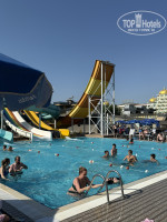 Небольшой минус - это система катания в аквапарке и то, как к этому относится персонал (спасатели). Раньше в других отелях на каждой горке стоял спасатель, плюс внизу тоже, со свистком - который подавал команды, чтобы люди не ударились друг об друга и вылезали из бассейна. Тут спасатель у бассейна просто сидит в своем кресле и наблюдает за происходящим) А на горках был только один спасатель - он помогал кататься на горке с ватрушками. Соответственно люди катались и щучкой, и на спине, и с разбега… Все это изменила ситуация, которую я увидела своими глазами. Мужчина с разбега летел щучкой с оранжево-черной горки и пробил себе лоб, бровь и глаз (каким образом я не поняла, но то ли в бортик, то ли об другого человека), все это лилось ручьем, все люди были в шоке, прибежала врач и приехала скорая… после этого в этот день очередей на горках не было, да и я сама ушла, потому что было как-то грустно и неприятно. В итоге на следующий день, когда я пришла в аквапарк - стояло много администрации, рабочие, разматывали длинные плавающие бортики для бассейна (можете посмотреть в прикрепленных фото - их не было, а потом фото с ними) и устанавливали их, на горках уже стояло больше спасателей, да и снизу спасатель свистел иногда. Даже стало как-то удобнее. Вот так вот.
