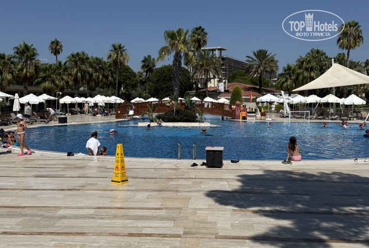Отдыхали семьёй в конце июля, с ребенком 9 лет. Мне всё понравилось, отдых удался! Прилетели в 8 утра, заселили как положено ровно в 14:00, раньше не смогли, т.к отель полностью заполнен, ну это понятно, (так сказать я и не рассчитывала) июль месяц, понимаю. Мы были двумя семьями, попросили по ближе поселить или хотя бы на одном этаже, в итоге нам дали две комнаты на 3 этаже рядом друг с другом, спасибо! Была приятно удивлена, что персонал русско говорящий, при чём хорошо говорящий, так чтобы тебя не понимали или ты их, такого не было, все очень внимательные, ни одна просьба не осталась без внимания. Комнаты не большие, но нас это не напрягало, что бы прийти принять душ и поспать, вполне достаточно. В номере чисто, комфортно, убирают каждый день, бар пополняют тоже каждый день, постельное бельё и полотенца белоснежные. Еда вкусная, хотелось бы только выпечки на завтраки вкусной побольше, тут с этим скромно. Территория отеля красивая, зелёная и большая. Для детей прям то что нужно, бассейн хороший, красивый, днём какие-то развлекаловки там устраивали детям. Игровая площадка большая, мини-клуб есть, вечером на открытой площадки мультики транслировали. Пляж песок, долгий вход не глубоко, от этого море ещё теплее и соответственно детям так комфортнее входить в воду.Вечером в амфитеатре детское развлечение, хочу заметить достойное, не абы как поплясали, а всегда какое-то представление. Для взрослых тоже шоу и дискотека, ночью ещё ночной клуб работает.Планирую вернутся ещё.