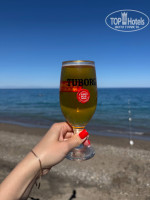 В баре из алкогольных напитков было пиво (хорошее), вино красное и белое (на любителя, белое норм со льдом), водка, раки, джин. Из безалкогольных сок, пепси, спрайт, фанта. К сожалению, не было пепси лайт и тоника. Брали джин, хороший, голова не болело. Официанты наливали все напитки без проблем в любом количестве, хоть по 4 стакана в руки. Очень понравилось, что все напитки, и в отеле, и на пляже, подавались в стекле. На пляже без проблем наливали пиво в свои термокружки. В баре у бассейна и в баре на пляже стоят холодильники с водой в стаканах, это удобно.