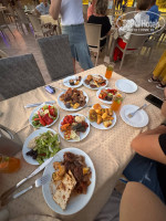 Обед: было несколько видом гарниров (макароны, рис, картофель) и 1 горячее (либо рыба, либо курица), иногда была говядина, иногда добавляли субпродукты, иногда непонятные котлетки из соевого фарша, так же были местные лепешки, много салатов, свежие овощи, маслины, оливки. Из фруктов только яблоки, груши, дыня. Так же был 1 суп, но мы не пробовали.