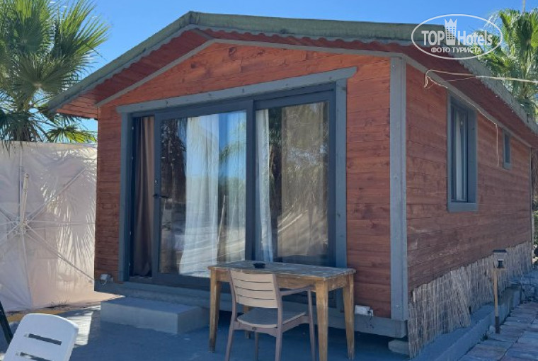 От отеля до пляжа пешком минут 5-7, но нужно переходить достаточно оживленную дорогу и далее идти вдоль дороги, где ездят иногда машины. От нашего бунгало время дороги до пляжа составляло не более 1 минуты, шли по прямой, спускались по лесенки возле причала водного спорта, туда же ставили лежаки и пользовались тенью от пляжных домиков. К слову, аренда таких домиков – 2000 лир в день. Но они все какие-то обшарпанные, грязные. Во время нашего прибытия гест релейшн лично стирала там занавески. На пляже нет бич боя, лежаки аккуратно в конце дня никто не расставляет, мусор тоже особо никто не убирает, пляж выглядит немного запущенным. Лежаки с хорошими матрасами, но их бы не мешало помыть. Плюс отелю, что они выдают пляжные полотенца, менять можно каждый день. Песчаная линия широкая, рядом нет пляжей соседних отелей, места хватает всем. Лежаки заранее никто не занимает, их тоже всем хватает, как и места в тени. Это огромный плюс.