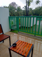 Отпуск дали неожиданно и нужно было срочно что-то запланировать, поиском некогда было заниматься, места в самолёте заканчивались. Поэтому забронировали первый попавшийся отель на пляже Ката. В 2024 году уже отдыхали в этом районе, пляж понравился, в сезон дождей волны не такие сильные и вход в море пологий. В отель прибыли в 09-30 , персонал на ресепшене очень неприветливый, никто не улыбается, все с кислыми лицами. Завтрак нам почему-то был не положен в день приезда. Оставили вещи в комнате хранения багажа и пошли на море. Вернулись в отель в 13 часов, еще раз подошла на ресепшен , попросила заселить, на что получили категорический отказ - заселение строго после 14-00. Депозит 100 долларов, не потеряйте квитанцию! Наш турагент предупреждала, что номера в отеле крохотные , но нам повезло, дали номер 214 на второй этаже , как раз над столовой, поэтому у нас был широкий балкон и возможность выйти через него на лестницу - это удобно, когда у вас один ключ. Шкаф для одежды вроде есть , но он такой маленький, непродуманный, всего 6 вешалок , так что вещи складывали на полку , возле кровати. Вообще дизайн номера оставляет желать лучшего. Нет прикроватных тумбочек, телевизор встроен в стену, когда заходишь в номер - он сам включается зачем-то. Один раз ночью самостоятельно включился телевизор и нас напугал , видимо когда отключался свет. Воду дают в стеклотаре, которую надо беречь и оставлять для обмена ( какой-то привет из СССР), если не досчитаются бутылки - штраф 50 бат. Приходилось переливать воду в пластиковую бутылку. Но самое печальное в отеле , это завтраки. За десять дней рацион никак не меняется, огурцы давали три раза, помидоры - нет, не видели. Из овощей : капуста, листья салата, нашинкованная морковь , фасоль. Похлёбка рисовая все десять дней , яйца жареные , рис, лапша, сосиски, круассаны. На этом всё. Хотя бы суп чередовали как-то, но нет, без изменений всегда. Бассейн работает до 20-00. После 21-00 такое ощущение , что все ложатся спать, как в пионерском лагере.Если бы не завтраки, то отель можно было бы рекомендовать для спокойного, размеренного отдыха .