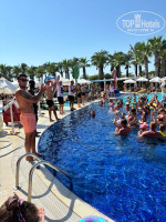 Пляж. Есть 2 пляжа, 1 пляж - прямо по аллее, он большой, с волейбольной площадкой, баром (пиво и вино), рестораном, зоной гёзлеме и бургеров. 2 пляж - идти мимо аквапарка, т.е. слева от основного. Здесь мало лежаков, позиционируется как релакс пляж и имеет бар со всеми алкогольными напитками и коктейлями, к концу нашего отпуска - в 9 утра свободных мест уже было не найти). Заход в море - мелкая и крупная галька, да - ногам больнова-то, но это видимо не были в Кемере). Мы обошлись без аквашузов, даже ребенок их скинул через пару дней. Огромная благодарность за достаточно тёплую воду в душах у пляжа!!!!! Не знаю как они это делают, но после моря было очень комфортно обмыться не со спиранием дыхания, как всегда