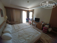 Номер уставший, есть пятна на мебели и шторах, местами мебель пошарпана, поэтому если для вас важен эстетический вид номера - будьте готовы к тому, что в этом корпусе есть такие номера.