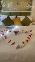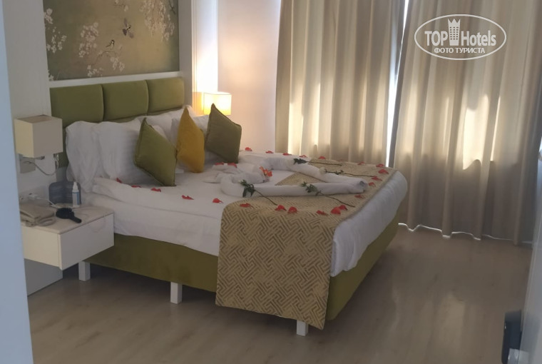 Никакие браслеты нам не надевали. Затем показали, где переодеться, и мы пошли гулять по территории отеля. В час дня нам дали номера домиках, на 2м этаже. Когда мы пришли в номер, мы были в шоке, таких грязных номеров мы ещё не видели, пришлось идти на ресепшн. Там работает замечательная девушка, зовут её Родика. Она прекрасно говорит по-русски, решает все ваши проблемы, в общем, просто волшебница. После обращения к ней наш номер был идеально убран, и убирали его каждый день, оставляя фигурки из полотенец и цветочки.