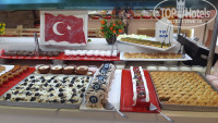 Питание в отеле в принципе хорошее, но в "Ramira joy" нам понравилось больше. Вкуснее и интереснее блюда. За неделю 2 раза красная рыба,форель часто была, мидии в закусочках. Говядина,курица,индейка. Дают мороженое. Выбор фруктов: арбуз,дыня, мандарины,апельсины,виноград и др. Пекут вкусное пидэ и пиццу.