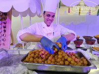 На счет еды, на территории есть рестораны с меню и главный ресторан в котором происходит завтрак обед и ужин. Официанты быстро и оперативно убирают со столов и подносят следят за напитками в стаканах.