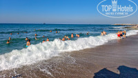 Пляж. Молодцы, приобрели электрокар, возили на пляж. Несколько раз и мы воспользовались. Пляж без изменений. Показалось, почище стал. В 10 часов арбузы давали. В баре – пиво и безалкогольные напитки. С 12:00 работает "перекус". Первые два дня был штиль, поплавали с масками – рыбок погоняли. Потом были волны, но пляж не закрывали. В воде есть несколько неприятных камней, чуть-чуть осторожность не помешает.