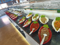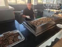 Старенький отель. С претензий на 5*, до которых ему как до Китая пешком )) И всё же отель весьма и весьма неплох. Расположен практически на берегу - свой тоннель под дорогой на пляж. Мы летали семьёй из четверых человек за 280 в июне 2025 - это прям неплохая цена для Новосиба, брали не заранее. Есть клуб под бассейном - мы там даже не побывали. Есть три ресторана - на крыше, в том числе на улице. Там можно курить - и это прям выбешивает, причём тупые курильщики стараются занять места, чтобы курить на всех. Крытый - огромный. Бистро - на улице, второй этаж над баром с 12 до 17 часов пицца, картошка-фри, бургеры, тут же с 19 часов- ресторан а-ля-карт. Бар у бассейна. На территории есть какие-то бессмысленные магазинчики, где всё минимум в 2 раза дороже, нежели просто выйдя наружу. Приветливый персонал. Еда достаточно однообразна, в основном это томаты перец и баклажаны - но вариаций просто масса. Есть и мясо, и рыба, особенно в мини-ресторане вечернем. Там а-ля карт один раз за тур бесплатный. Ну не то, чтобы меню - просто вам персонально приготовят рыбу и салатики. Рыба очень неплоха. Слетал бы ещё? Да даже вот да.
