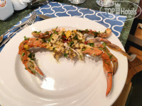 Из еды была телятина , говядина, баранина , форель раза 3-4, крабы, креветки несколько раз. Рыба различная, ноу нейм))) я не различаю, но вкусно.