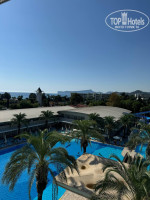 Мы приехали около 9:30 и сразу уточнили возможность раннего заселения. На рецепции встретили приветливо, предложили оставить вещи и сходить на завтрак. Через полчаса, за бумажный комплимент от нас отелю, нас заселили в номер, который полностью соответствовал нашим пожеланиям: 4 этаж с видом на бассейн, горы и море (предпочтения уточняются заранее).
