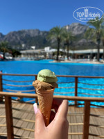 Перекусы организованы удобно: в баре возле детской площадки с 12:00 можно заказать бургеры, пиццу, картофель, крылышки, фрукты — обслуживание как в ресторане, с меню и официантом. После 15:00 там же предлагают «крошку-картошку» с начинкой на выбор. В соседнем баре с 12:00 до 16:00 готовят гезлюме с разными начинками, а у бассейна с 12:00 до 16:00 — мороженое, сладости и безалкогольные напитки, включая айс-латте.