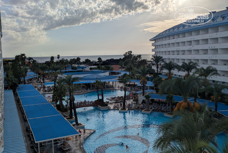 Приветствую. Оценка средняя бюджетная 5ка. Берёт только аквапарком. В остальном где-то то даже не дотягивает до них. Внутренний бассейн без подогрева, что очень огорчило. Когда на улице дождь, негде купаться. Обслуживают Индонезийцы, как и везде в отеле весь нисший персонал Индонезийцы. В спа работают которым плевать что происходит внутри. Хаммам заполнен, не хватает элементарно чашек чтобы обливаться. Говоришь об этом парню турку на турецком, что нужно ещё, он смотрит и говорит вот есть. И ни черта не делает, а только требует чтобы купили комплексную помывку. В номерах нет набора для чая и кофе. Даже на территории не найти пакетированный кофе. Если захотите чай, кофе, нужно идти в бары или кофейню, и то кофе там с автоматов. На вкус ужасный. Сахар в одноразовых пакетиках полный шлак. Только портит вкус чая или кофе. Уборка посредственная, бельё меняют раз в неделю. На день рождения да делают комплимент в виде бутылки вина и пирожного. Заход в море: 5 метров пологий заход мелкая галька и потом резкая глубина. Надо быть внимательнее с детьми. И желательно в кораллках. В ресторане пока сам не попросишь, не подойдут и не спросят, что желает посетитель, в этом плане даже Мукарнас выигрывает, да вообще Мукарнас или Шервуд намного лучше этого отеля. Да еды много. И такая же как и во всех отелях 5ках в Турции.