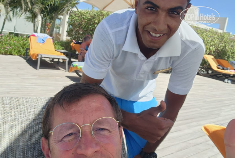 На пляже, и у бассейна обслуживают официанты. У бассейна возле пляжа понравился официант Иша, очень вежливый, внимательный, быстро приносит вкусные коктейли. Помнит ,что тебе нравится больше всего. Всегда поинтересуется как дела, пожелает приятного дня. Спасибо ему большое за прекрасное настроение.
