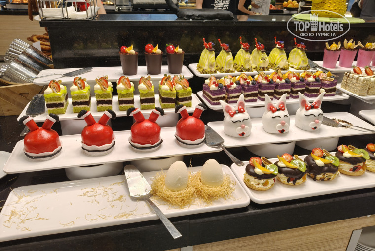 Питание - супер, ни в чем не уступает белековскому селектуму. За неделю несколько раз были морепродукты, ежедневно минимум два вида рыбы на гриле (дорадо, сибас, скумбрия, лосось). Мясо говядина, индейка, курица, ягненок - не по-очереди, а одновременно практически всегда. Все очень вкусно приготовлено. В любое время все постоянно пополнялось. Никаких очередей, хотя отель заполнен на 100%. Выпечка на любой вкус. Спиртное не пробовали, про него не могу сказать ничего.