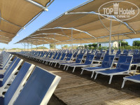 На пляже в любое время свободные лежаки. Они, кстати, новые и достаточно удобные. Очень удобно, что лежаки под навесами, а не под зонтами.