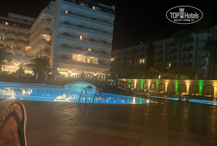 Были в конце сентября с женой и ребенком 2года. В турции первый раз и больше не охота. Отель точно не 5*, в лучшем 4-. С детьми в отеле делать не чего. Питание детям не подходит. Детская анимация просто никакая. Пляж не для детей, галька и вход резко становится глубоко, пляж помойка, все в бычках и все курят, на замечания, что маленький ребенок весь в дыму реагируют не все. Лежаки на первом ряду занимают с 07.00 утра. Полотенца меняют платно и только на -2 этаже, ужас. Сейф в номере платный. Питание на любителя, фруктов были (арбуз, сливы, яблоки) виноград хватало только на первые 20 мин, не докладывали. Алкоголь дешевый турецкий, пили пиво и джин тоник (более менее). Уборка в номере на 3, если не оставишь чаевые убирать не будут. Кофейные автоматы постоянно ломались или не выключались, работали только в так называемом ресторане. Сок из автоматов детям лучше не давать, там намешано какое-то ужасное юпи. В этот отель точно не вернемся, да наверное и в соседние отели тоже не поедем, пляж ужасный.