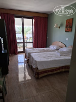 Номера в домиках крайне скудные и старые. Реально конура. Тесно. Перед номером очень тесно. Впрочем как экзотика кому-то подойдет. В номере не работал сейф и телефон и чинить никто не собирался. Как то все убого. Путем дальнейших переговоров (30 баксов) дали номер получше, тоже старый, в основном здании с отличным видом. Закаты хороши. (Передняя ножка стула. В задней ножке будут рассветы). Номер на 2 этаже. Все необходимое есть. Забавно было то, что вилка электрочайника не доставала до розетки (фото) и воду кипятить или в санузле или на полу (фото). Горячей воды нет, еле теплая и напор слабый. Белье не меняли ни разу! Только заправляли и все. Полы мыли. Есть номера после реновации. У них электронные замки. Там уже гораздо лучше и комфортнее. Правда и мы не оставляли чаевые. В первые дни крутили полотенца и клали цветы на постель. Потом, понятно, перестали.