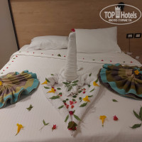 Прилетели 8.10.2025 после обеда, так как тур был в премьер доброжелательный работник проводит на территорию прям напротив аквапарка, со своим небольшим рецепшн и начали заполнение на заселение. Застали поздний обед, заселились. Так как путевка была в Premier, номера напротив аквапарка наш был 4266( премиум) 2 отдельно стоящие кровати больше стандартных, хороший номер. Не шумно , ну уж в коридорах всегда бывает и тихо и громко.