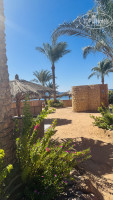 Пляж - чистый , песчаный, с постепенным заходом в море. Шезлонгов очень много, стоят зонтики с столиками и задней перегородкой - что очень удобно .Есть раздевалки и душ. На пляже есть бар - в котором можно взять мороженное , напитки , воду и что то перекусить . Так же вечером можно взять кальян . Работает 10 до 23.