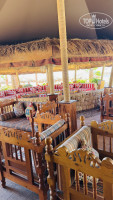 Еда по системе "шведский стол" ;. Выбор достойный: каши, яичница, сосиски,мясо, рыба, свежие овощи,разные салаты, фрукты, выпечка,- довольно вкусная еда, разнообразная . А вот фрукты не понравились - или не спелые , или ..... Брали на рынке в Дахабе что вкусное а что то такое же как в отеле.