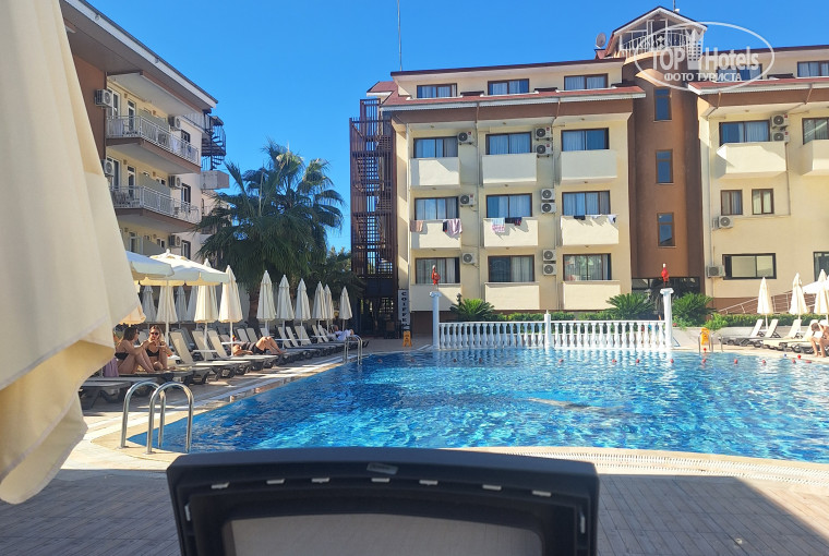 По отелю. Территория маленькая, зелени мало, несколько пальм, остальное в горшках. Бассейн среднего размера, 4 горки для взрослых, стыки не ощущаются. Лежаков и зонтиков много, сейчас всем хватает, в сезон - не уверены. Лежаки хорошие, сломанных нет, сетки тоже целые. Полотенца меняют в хамаме в понедельник и четверг с 17 до 19. Есть кошки. Много. Разных возрастов. Это, конечно, мило и всё такое, но не лишайные, гуляющие по столам в баре.