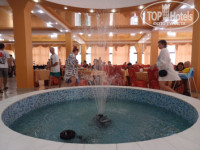 Ресторан с двумя большими залами на первом и втором этаже, красивой мебелью и даже фонтаном без труда вмещал всех отдыхающих (свободные места были всегда). Количество еды тоже соответствовало наполняемости пансионата. Питание в ресторане трехразовое, "шведский стол". Вкусовые качества и свежесть блюд не вызывают никаких замечаний. Возможно, хотелось бы большего разнообразия в меню. Немного не хватало кофемашины (особенно, на контрасте с отелями, в которых я отдыхала в предыдущие годы). Приятно удивило количество и внешний вид десертов. Что касается заявленных в рамках системы "все включено" бесплатных пончиков, мороженого и напитков, то здесь реальность, к сожалению, не совпала с ожиданиями (все оказалось гораздо скромнее, поэтому пришлось обходиться без этого, благо трехразового питания было вполне достаточно).