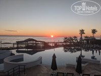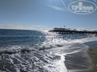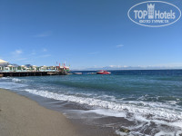 Пляж у отеля небольшой, довольно узкий, лежаки стоят в 2-4 ряда. Вход в море по крупной гальке, но я плавала от одного пирса к другому. По краям пляжа два больших пирса; на том, что поменьше (справа от пляжа, если стоять лицом к морю), стоят кабаны и немного лежаков. На большом, который слева, очень много лежаков и вотер спорт. Пирс разгорожен забором вдоль, часть за забором принадлежит соседнему отелю. Благодаря этому забору на пирсе почти всегда нет ветра. Много лежаков стоит и вокруг двух бассейнов, и на площадке под деревьями между бассейнами. Лежаков очень много, просто в избытке, но везде они стоят вплотную друг к другу, отсюда общее ощущение тесноты, скученности. Ближе к заходу солнца на пляже тень, и люди перебираются на большой пирс, где еще светит солнце. Световой день в октябре короткий, к тому же отель расположен близко к горе, солнце заходит за гору уже в 17:20, сразу становится прохладно и быстро темнеет.