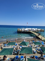 3. Пляж. Галечный, нужна специальная обувь. Но в этом году при подготовке пляжа береговая часть была отсыпана крупным песком, что намного улучшило вход. В наше прибывание с наличием свободных шезлонгов проблем не было, как обстоят дела в высокий сезон сказать не могу.
