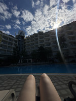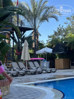 Пишу отзыв находясь еще тут, на отдыхе, Начну сразу с минусов: в отеле существует проблема с лежаками на пляже, которую создают сами туристы и не решает персонал. На пляже никого нет, но лечь негде, потому что лежаки все с 6 утра забронированы полотенцами! Такая же ситуация и у бассейна. Мы с мужем пришли на плаж в 10 утра, мест не было, потому что все в полотенцах. Двумя полотенцами бронируют 4 лежака рядом и ставят на них камни, чтобы не улетели. С двух лежаков мы полотенце убрали и легли. В ДВА часа дня приходят две женщины, спокойно и молча берут свои полотенца и ложаться на свои «забронированные» лежаки. Проходит еще час, мы с мужем оставляем все свои вещи и идем в ресторан на пляже (в двух шагах от лежаков) нас не было 15 минут, возвращаемся. Все мои вещи убраны и на моем лежаке рядом с моим мужем чье то полотенце. Я его убираю и ложусь обратно, приходит женщина весовой категории 100+ килограмм и предупреждает, что сейчас будет драка, подходит ко мне, и с матами начинает орать чтоб я «ушла» отсюда, хватает меня за руку, пытается поднять и выкинуть, подбежал мой муж и её подружки, начали её успокаивать, она кричала что нас всех депортируют. Потом был очень долгий спор что в этом отеле так «принято» и их так «приучили» все это в агрессивной форме, в общем бесполезный глупый спор, по всему отелю объявления что бронировать полотенцами нельзя, люди где то шляются по пол дня, приходят на пляж в три часа, но бронируют шезлонги в 6 утра, и так изо дня в день, из за этого очень портиться впечатление об отпуске. В бассейне вода ОЧЕНЬ холодная, плавать невозможно, максимум 5 минут и потом вылетаешь оттуда. Персонал вежливый. Еда на твердую 4, мяса много но в основном это курица, котлеты (странные) сыр весь почти один и тот же, типа брынзы, очень соленый, колбаса как обычно в турции, есть можно. Из фруктов только дыня, апельсины или мандарины зеленые, не знаю. Из овощей огурцы, помидоры, много оливок, листья салата, соленья, и тд. Есть супы. Каждый вечер на улице на гриле жарят шашлык и овощи, один раз была форель. Мы приехали в 7 утра, заселили нас в 12. Мы заранее когда покупали путевку взяли номер с видом на море (было дороже на пару тысяч) в номере одна кровать средняя и одна маленькая. Вайфай платный, на два устройства на 10 дней 20$, работает хорошо везде, в том числе на пляже. Полотенца для пляжа тоже платные, сколько стоит не знаю, мы специально привезли свои. Путевку покупали на 10 дней за 160 тысяч на двоих из Уфы. Погулять рядом с отелем не где. Если что то еще вспомню, то дополню отзыв