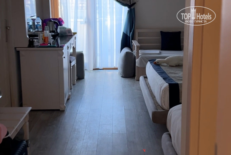 Ну а теперь минус - Работа ресепшена, наше заселение и те номера, что нам достались. Это провал!!! «Мягко стелют, жестко спать» - этой фразой можно охарактеризовать сотрудников ресепшена. Улыбаются, кивают, разговаривают вежливо, а по факту подсунули нам самый ужасный номер из категории Park Villa Family Two Bedrooms One Bathroom – в самой последней вилле над баром, с видом на город и поющую в 5:45 мечеть. Эта вилла даже визуально отличалась от всех остальных, так как снизу был бар, расположение комнат, размер балкона, все было ни как у всех. Но самое ужасное было – это запах из канализации в ванной комнате, который перешел на весь номер (не знаю уж связано ли было это с тем, что внизу бар со всеми техническими помещениями или нет…). Это было ужасно, до рвоты. Вытяжки там в ванной комнате нет, только маленькое бестолковое окошко и вообще состояние сантехники было ужасное. Запомните номер 1903 и, если вам его дадут, даже не ходите смотреть, сразу отказывайтесь. Мы прилетели вечером, на ресепшене была русскоговорящая девушка, которая на замену номера, сказала, что ничего свободного нет, и вообще она здесь ничего не решает, приходите завтра к кому-то там главному. На завтра этот главный мужчина нашу проблему решил очень просто: дал, вместо двухкомнатной четырехместной виллы, однокомнатный мизерный номер стандарт на троих в основном корпусе. Вот так. Под расписку, что мы сами так сильно желаем – сменить номер на категорию ниже. Как будто у нас был выбор?... Нам надо было, либо соглашаться на этот номер, либо блевать (извините) дальше, чем видишь в том, что достался изначально. Когда на ломанном русско-английском я пыталась получить равноценный нашему номер или даже доплатить за нормальный стандарт в основном корпусе на 4х человек (с площадью 26квм) (он идет дороже нашей виллы), то сотрудники меня не поняли, либо сделали вид, что не поняли. Все занято и это все, что есть. Фото и видео того номера, который нам в итоге предложили, я прикреплю, сравните его с теми стандартами, которые заявлены на сайте отеля. Там был малюсенький шкаф (того и дело развалится), буквально полметра длиной, занавески, которые в последний день отвалились, очень слабое освещение и еще бонусом была межкомнатная дверь с другим номером – прослушка такая, как будто живешь вместе с соседями… Ни в первом, ни во втором номере не было тапочек, правда по запросу принесли аж 5 пар (тапочки, кстати, клевые, мягкие, не картонные, как бывают в других отелях). Ну из хорошего – никаких неприятных запахов, очень хороший ремонт в ванной, и в принципе уютно, просто очень мало места. Мебель не прям новая, но кровати удобные, постельное белье чистое, гладкое. Поздно вечером запросили ребенку одеяло через ресепшен, без проблем принесли. И на том спасибо. По итогу то, что жили в основном корпусе, оказалось даже удобнее, в дождь и холод могли на лифте передвигаться из номера, в ресторан, крытый бассейн, бар и т.д., не выходя на улицу. Все в общем и целом ничего, но осадочек остался. В следующую поездку надеемся на более комфортное и менее нервное заселение, и более лояльное отношение сотрудников ресепшена.