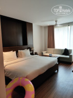 Основное, что его отличает от соседних отелей - это свой собственный ухоженный пляж. Если пройтись вокруг, можно заметить, что у других отелей пляжа нет вовсе, вся территория заканчивается через дорогу от моря, а на береговой линии кучи мусора, грязь и т.д. Здесь же пляж чудесный, со своими лежаками, чистый и ухоженный, с качелями для памятных фото.